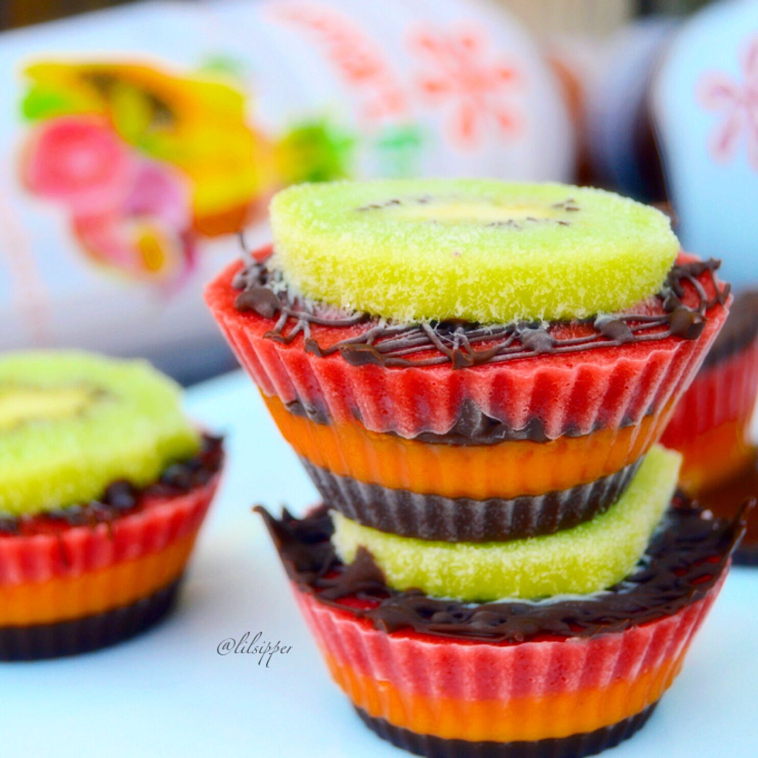 - Remove from freezer, drizzle with chocolate and top with a slice of fresh kiwi